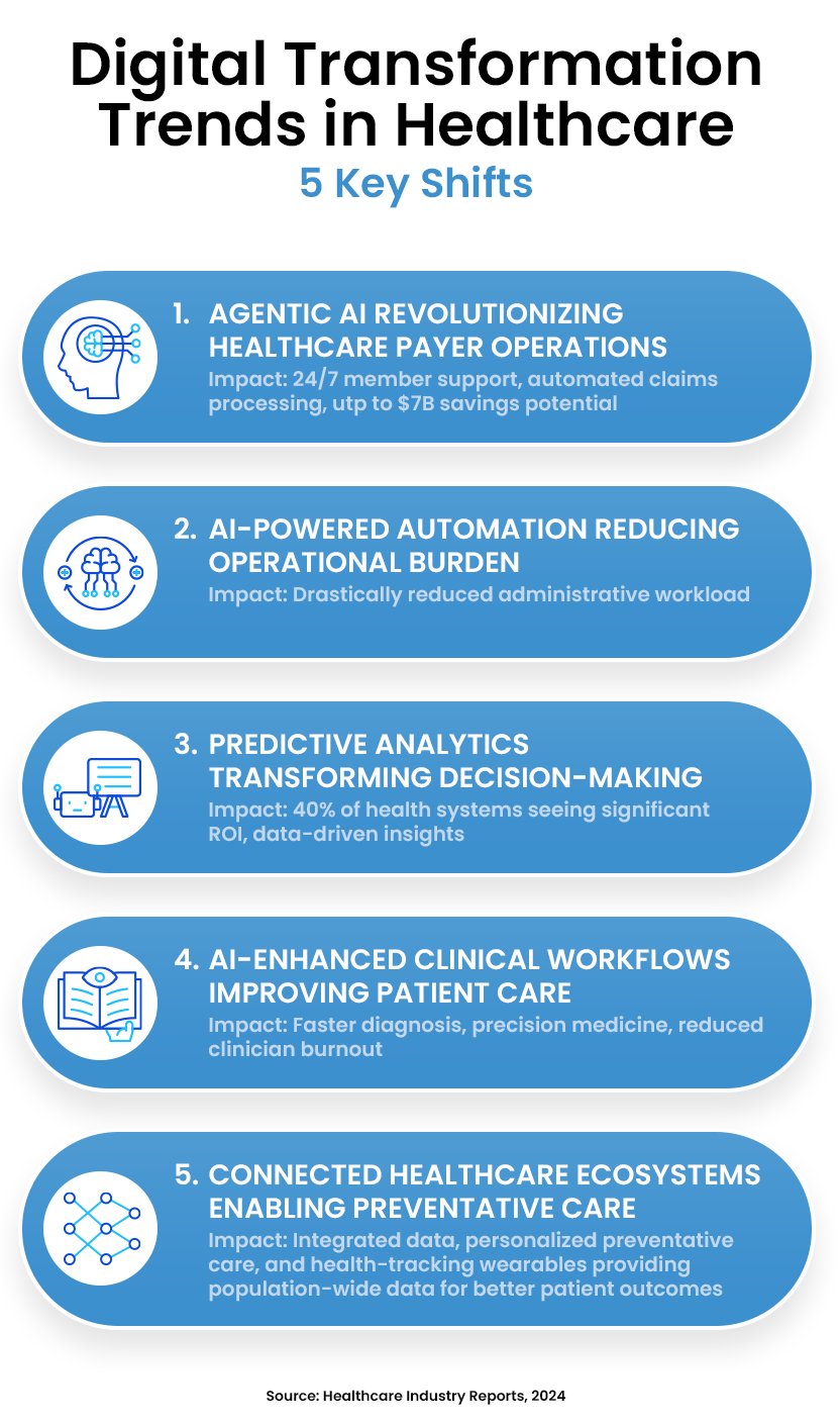 Platform Modernization is Essential: To accelerate future-ready operations, healthcare organizations should leverage agentic AI in conjunction with platform modernization . This creates a connected healthcare ecosystem that integrates advanced AI with modern processes and strategic partnerships, enhancing decision-making and delivering consistent, timely and accurate outcomes.